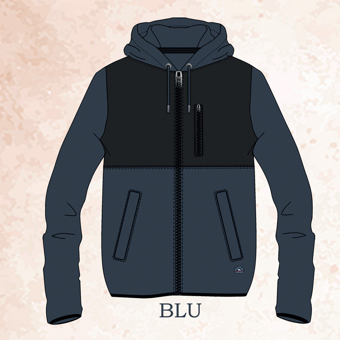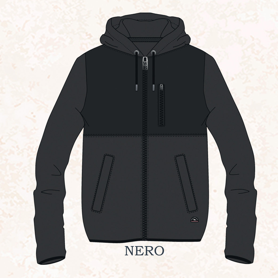 Felpa in Pile con Inserti in Nylon, con Cappuccio e full zip