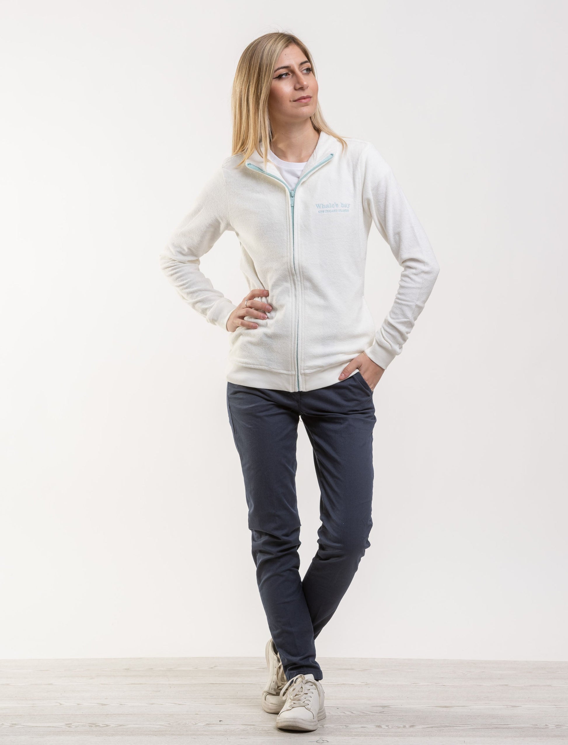 Felpa full zip in spugna e logo ricamato
