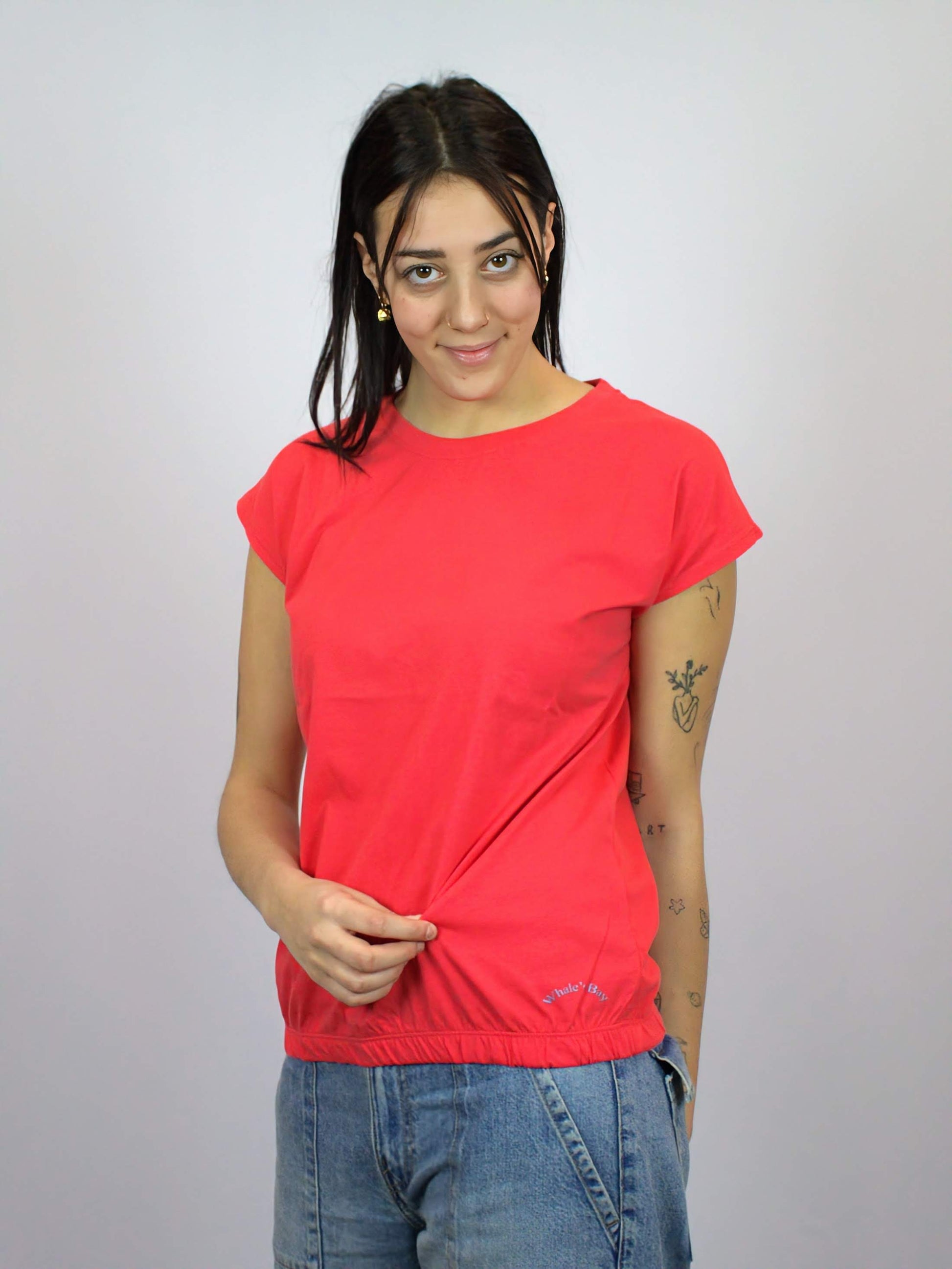 T-Shirt con scollo ampio, manica kimono e arriccio in vita
