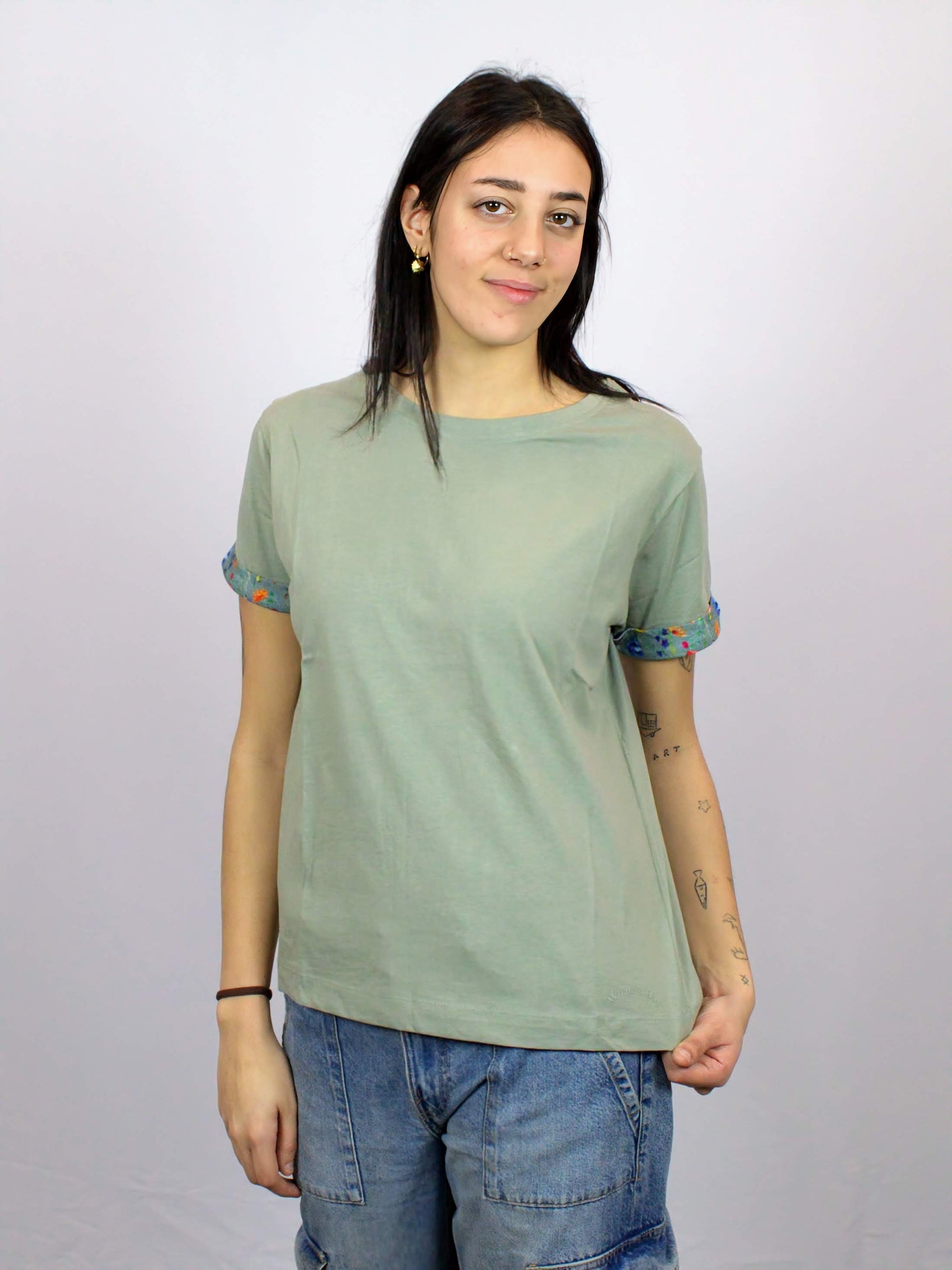 T-Shirt girocollo manica corta con risvolto